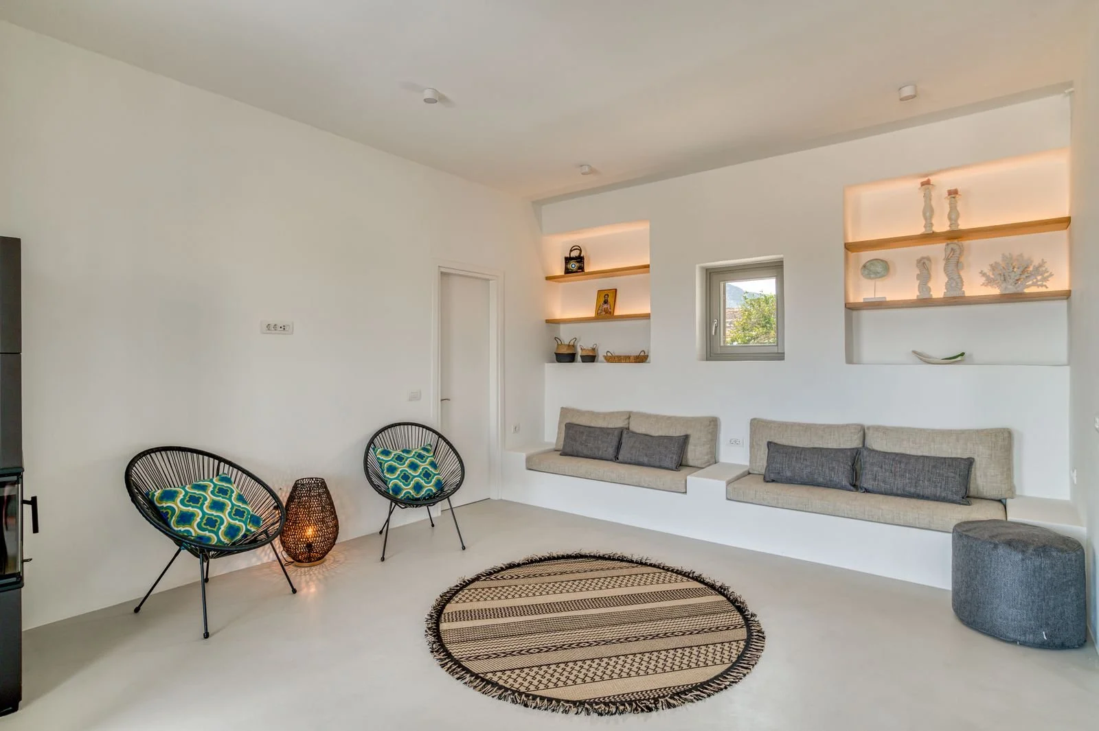 For those seeking relaxation and a refreshing dip, our villa boasts a private plunge pool, perfect for cooling off on warm Paros days. The outdoor spaces are meticulously landscaped, creating a serene ambiance that complements the island's natural beauty.