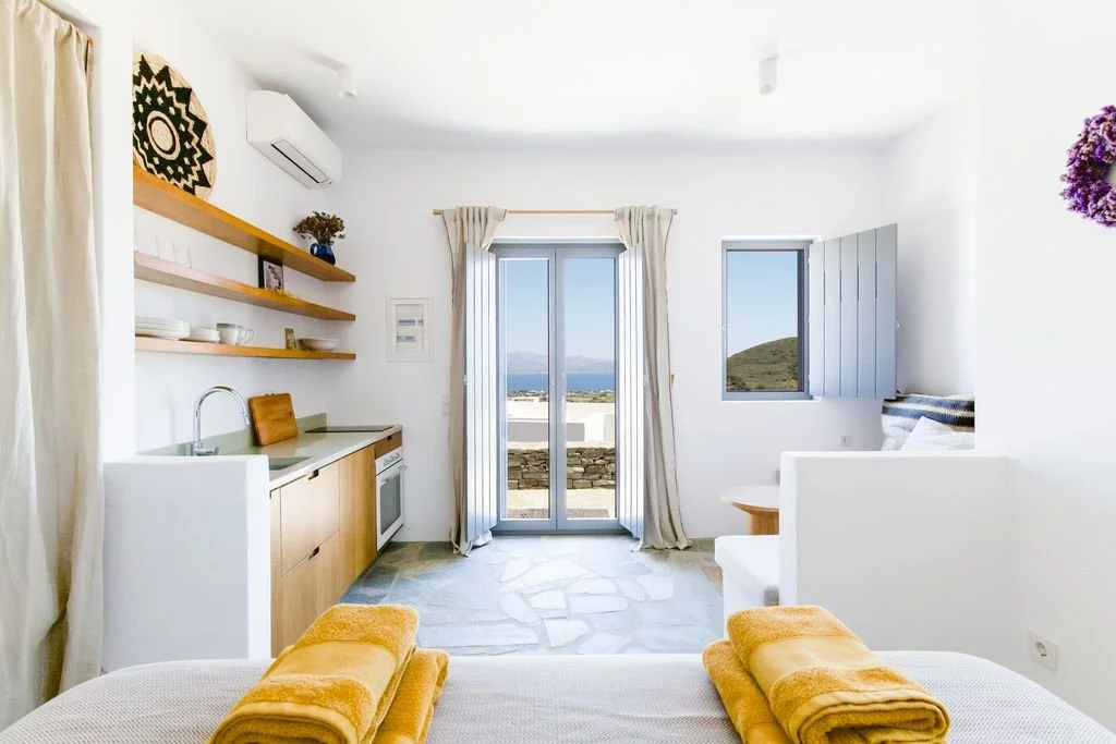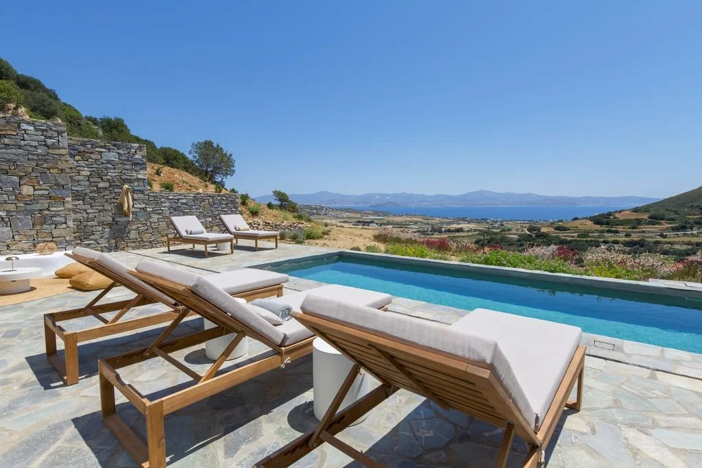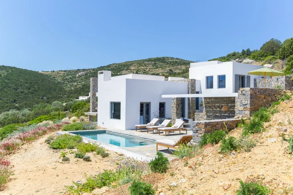 On the enchanting island of Paros, just a mere 10-minute drive from Naoussa, this villa harmoniously nestles on the hills between the picturesque villages of Isterni and Kostos, offering breathtaking panoramic views of the sunrise and the island of Naxos. Erected in 2023, this newly built villa stands out for its elegance and refinement. Well thought out, this villa provides a sea view from all bedrooms.