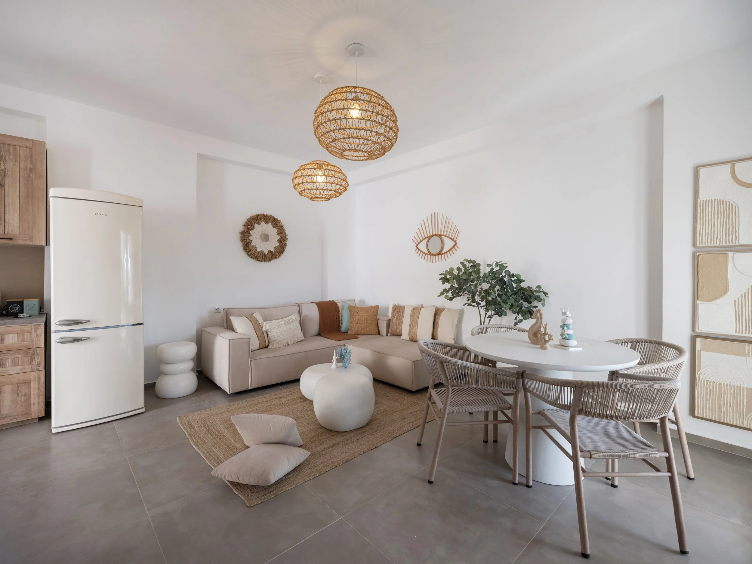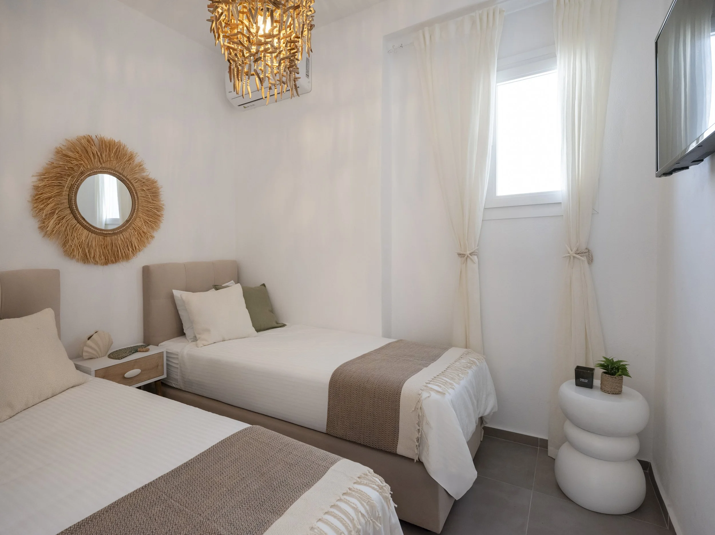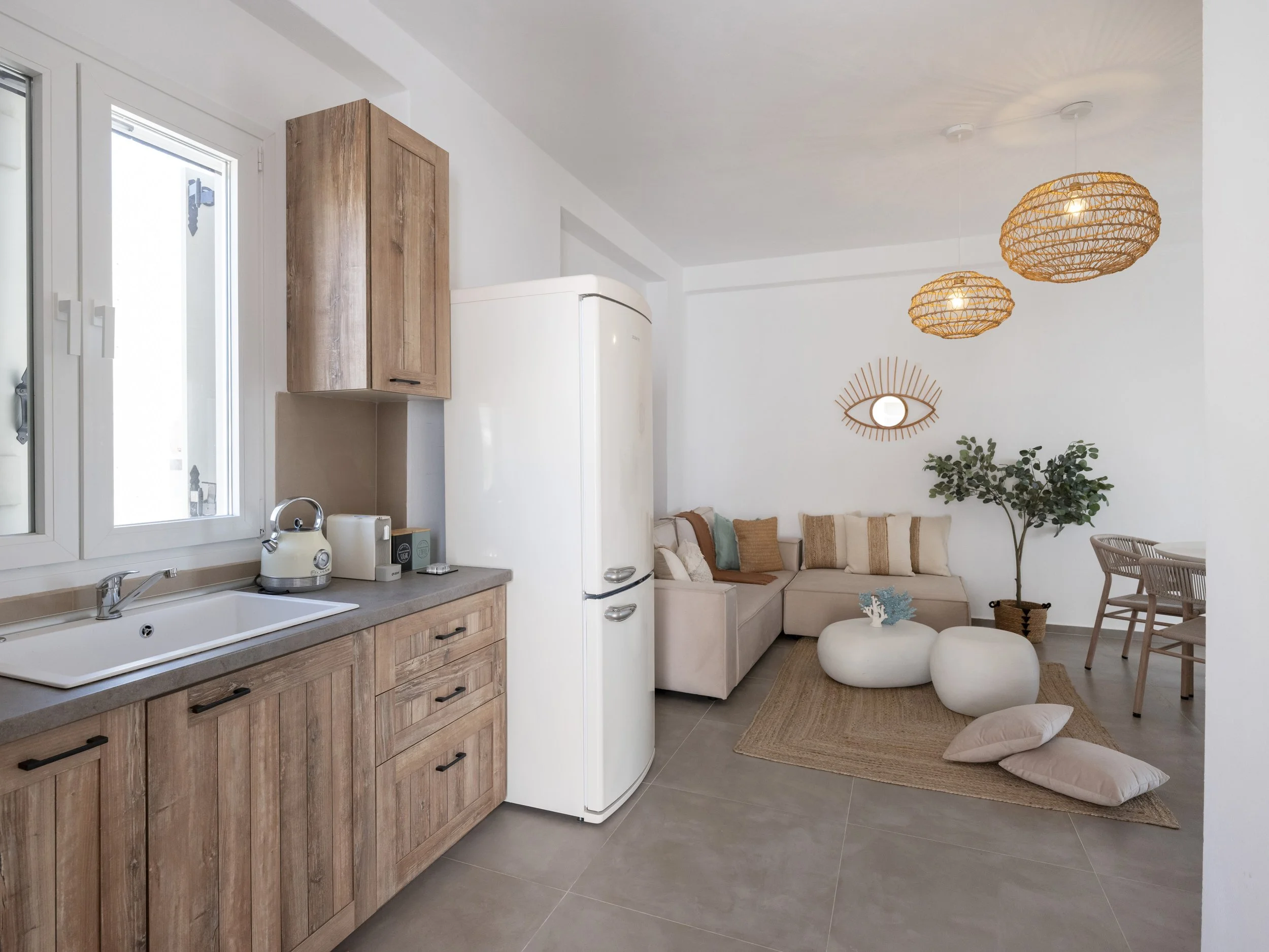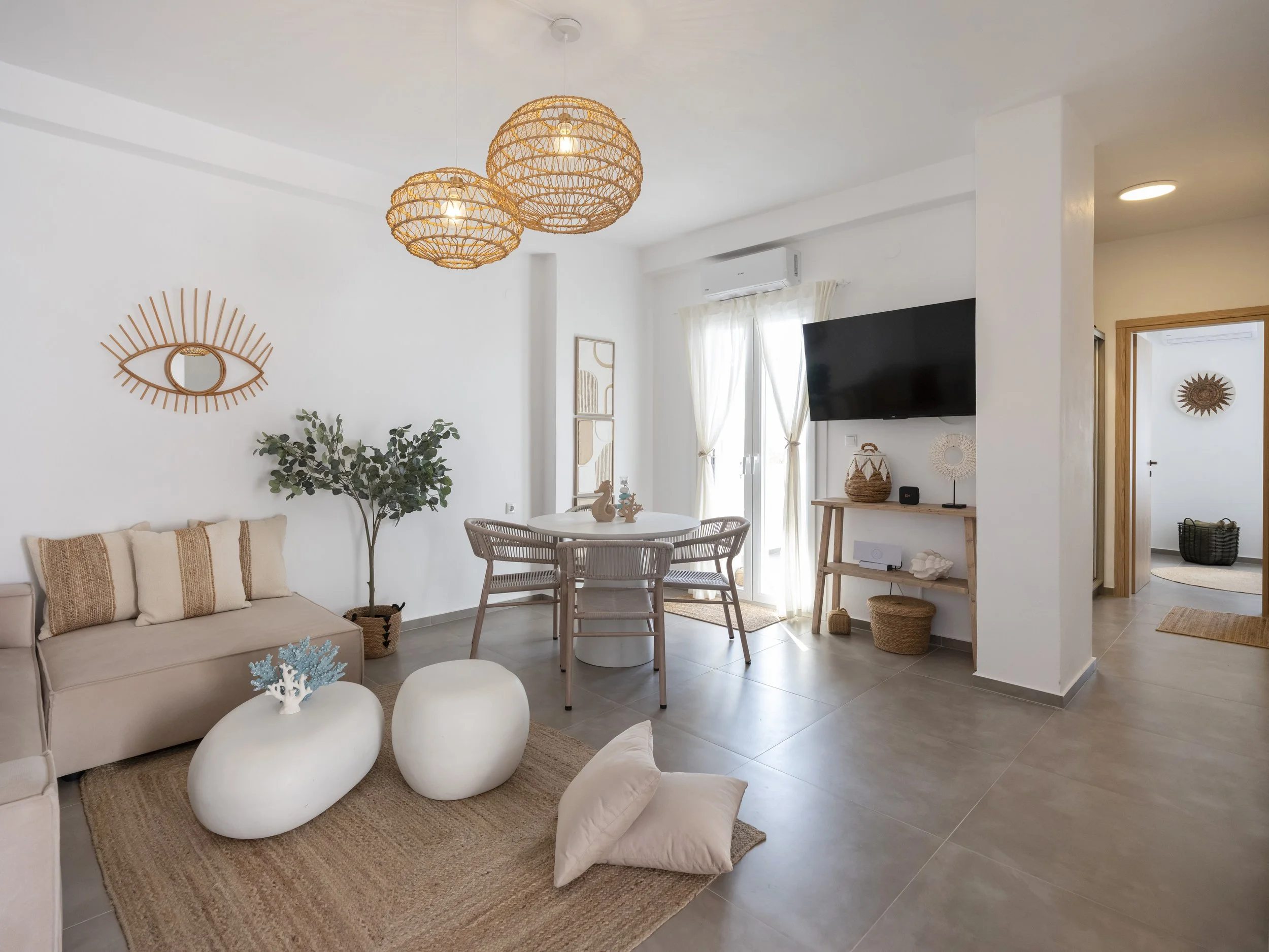 Set in the tranquil and desirable area of Pounta, this inviting 60m² apartment is an ideal retreat for those seeking a relaxed island lifestyle just moments away from one of the Cyclades' top kite surfing beaches.