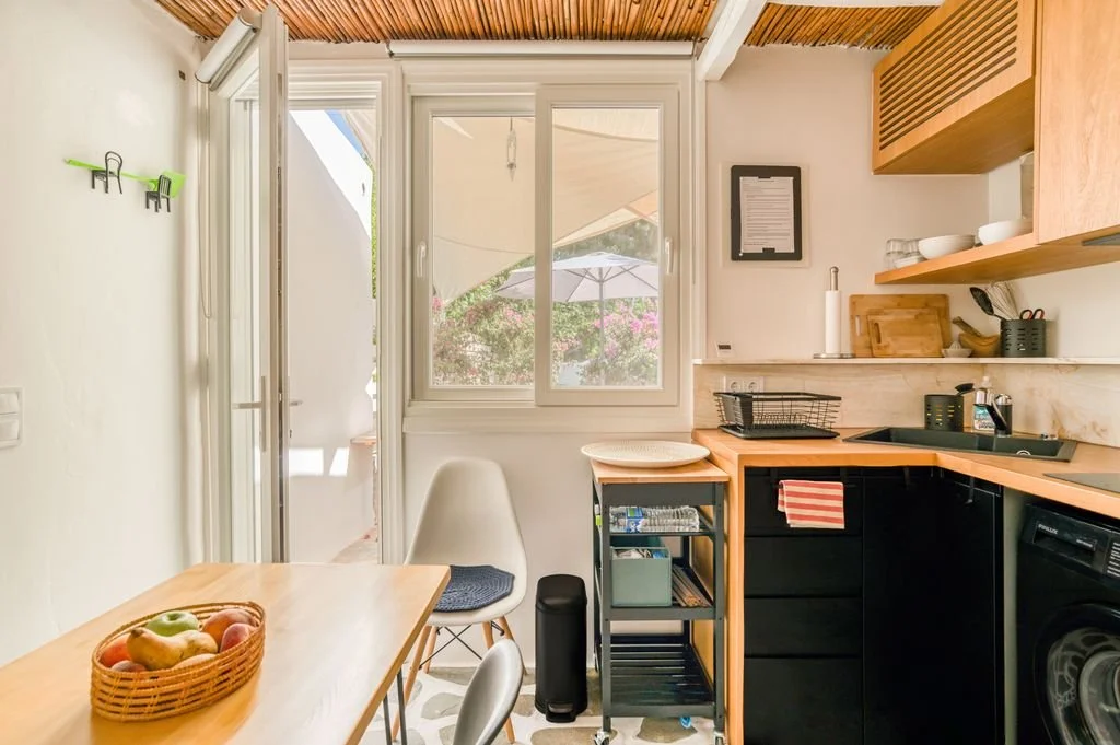 Nestled in the heart of Parikia, this charming tiny house blends modern design with the vibrant energy of its picturesque surroundings. Just a short walk from Livadia Beach, it offers the perfect mix of comfort and convenience for a unique stay on the island.